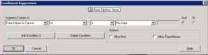 So in section “Suppress Column If”, we’ll choose “Data Values in Column”–> W–> “=”–> “No Data”.